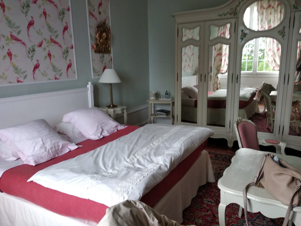 Après moult péripéties (pas d’auto de location en gare..), nous voilà dans notre premier château pour quatre nuits.